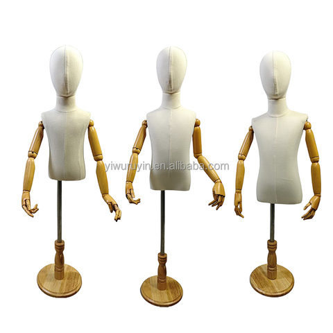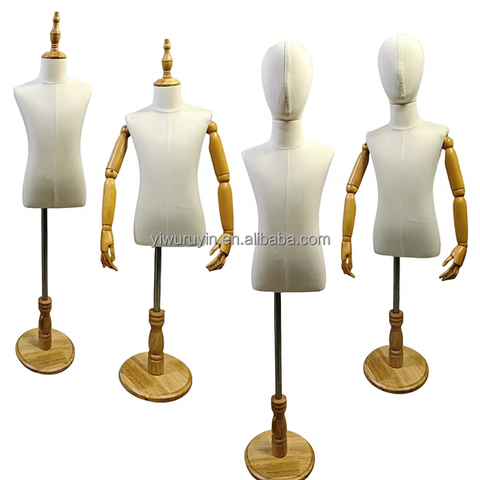 Pencere ekranı için kumaş kaplı kafa ve ahşap el ile ayarlanabilir Modern Unisex çocuk elbise formu manken